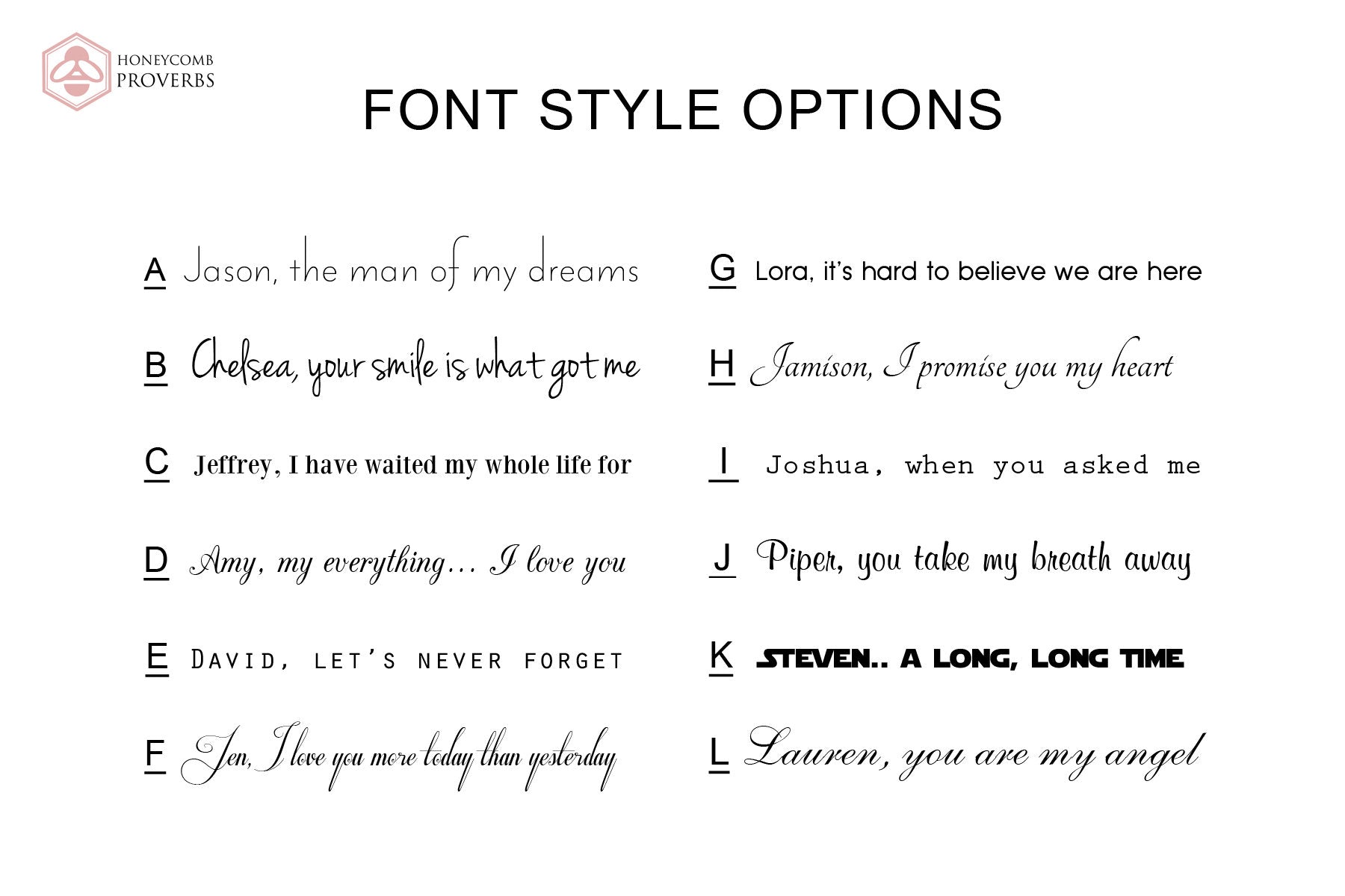Wedding Vows or other wording:Provide the wording or vows in the personalized field before adding to cart. If you prefer to send the wording via email, please include your order number in the subject line and email us at cs@hunnycombproverbs.com
