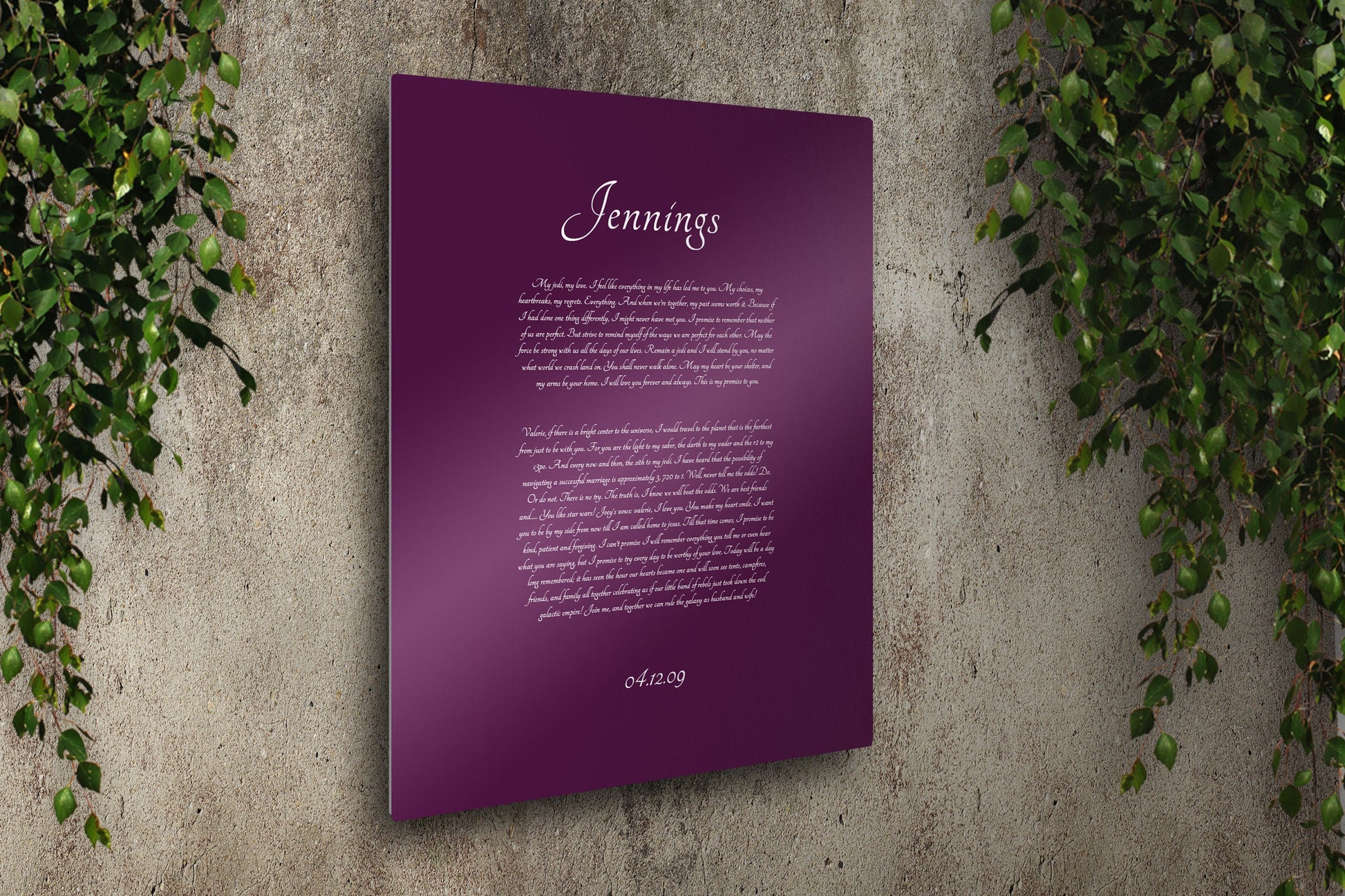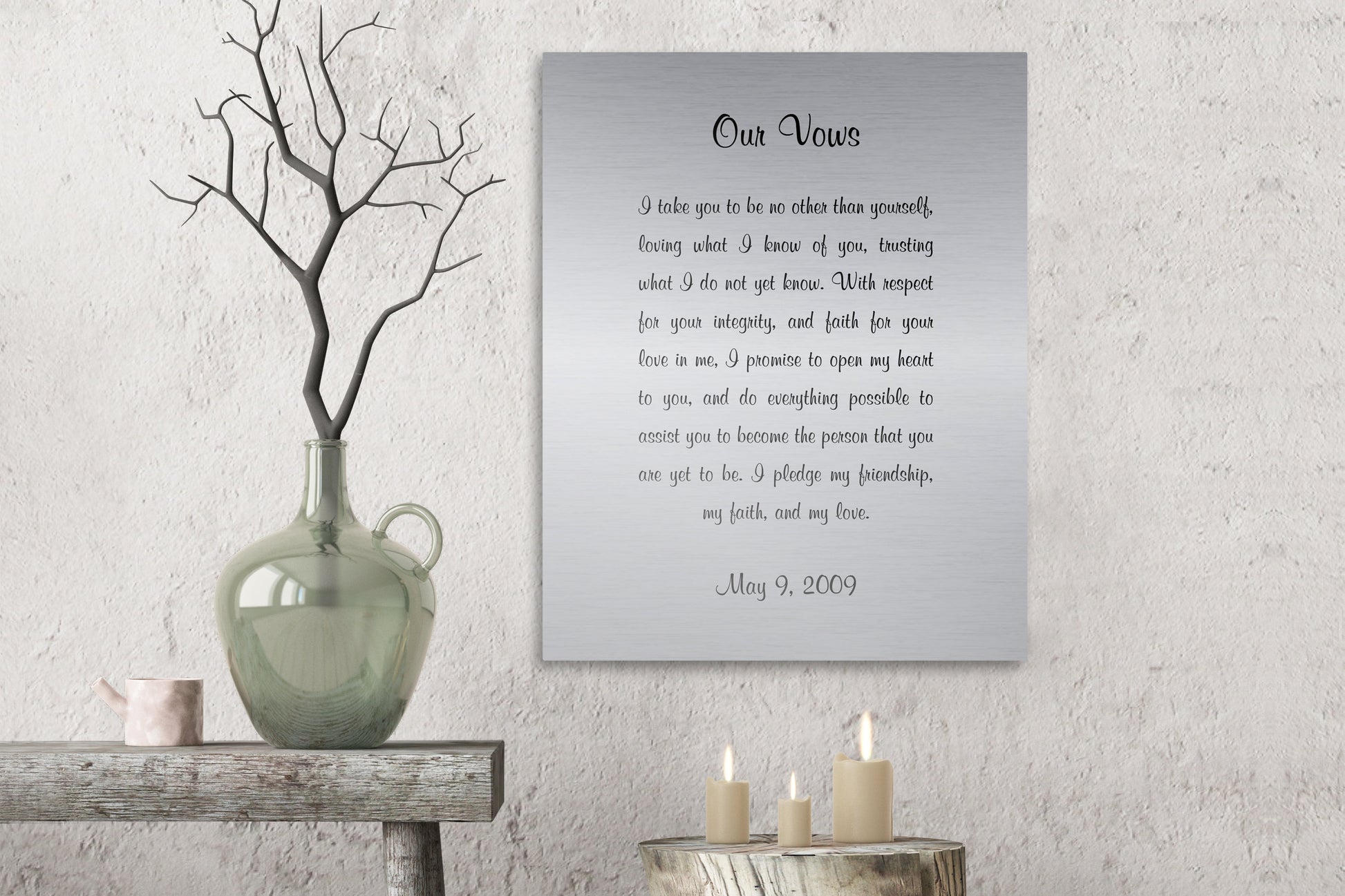 Wedding Vows Printed on Metal, Tin Anniversary Gift for her, Wedding Anniversary Gift for 10 Years, Gift for spouse, Ten Year Anniversary Gift Idea, Wedding Vows on Metal make the perfect "tin" anniversary gift for your tenth wedding anniversary!