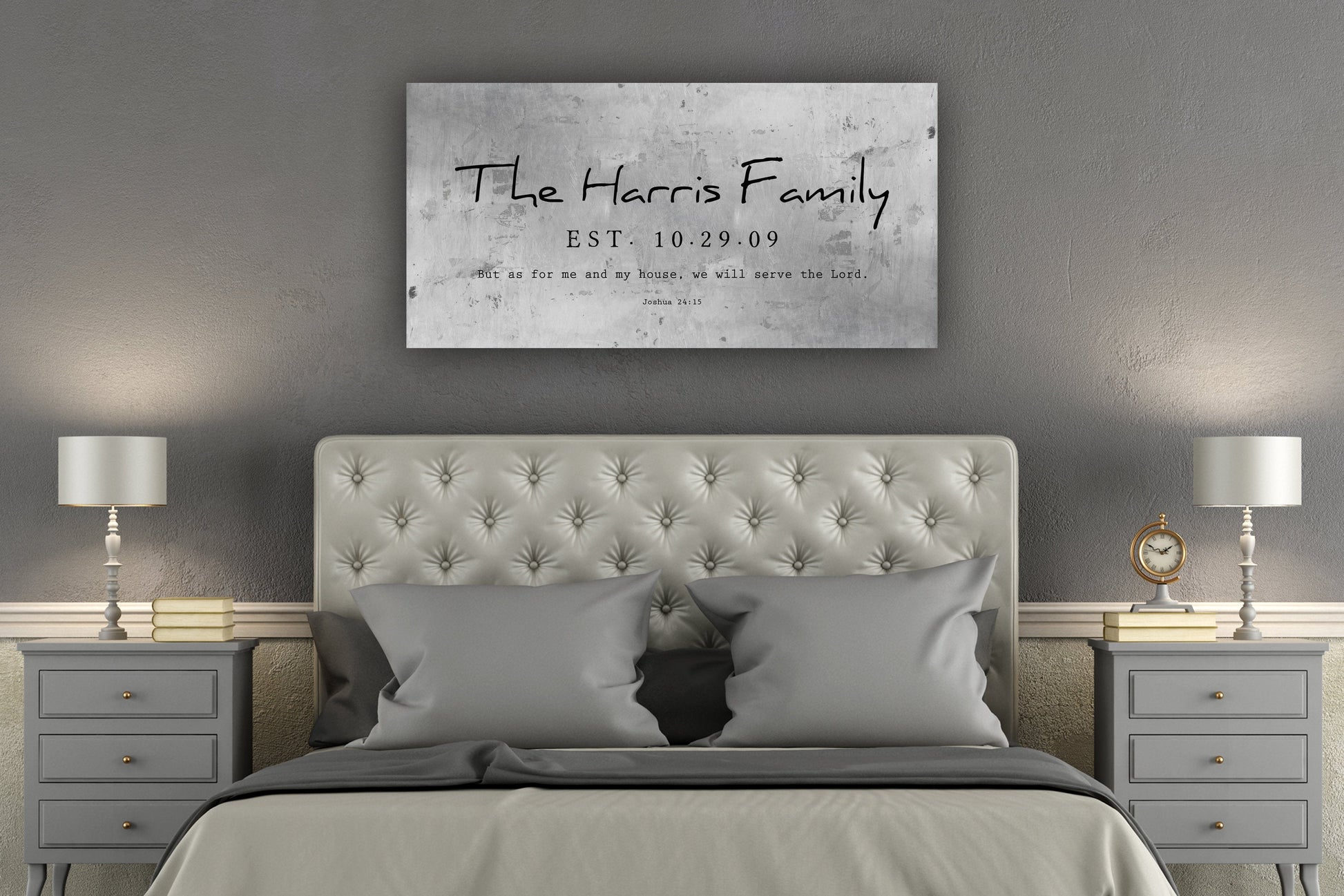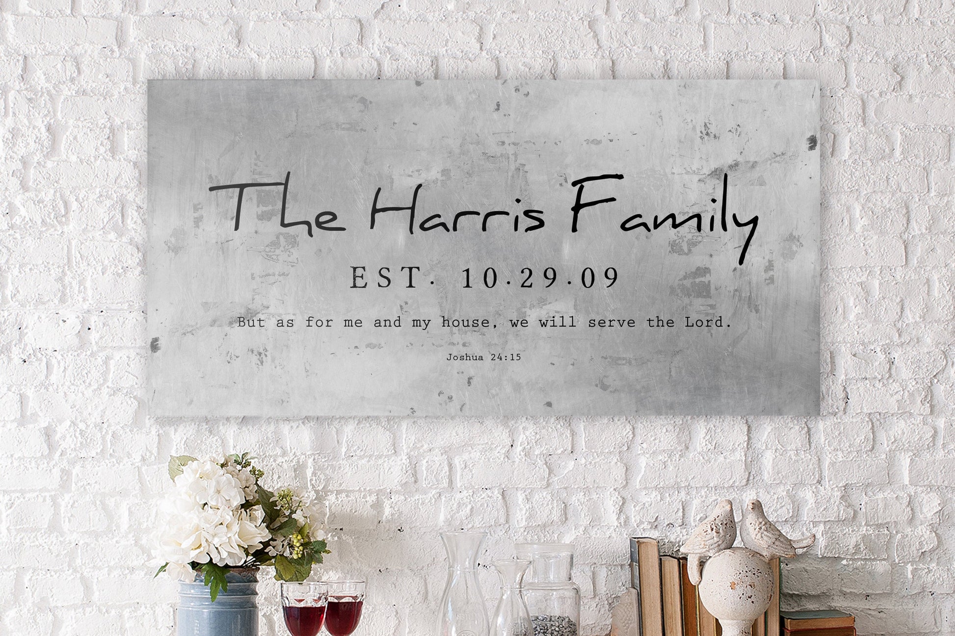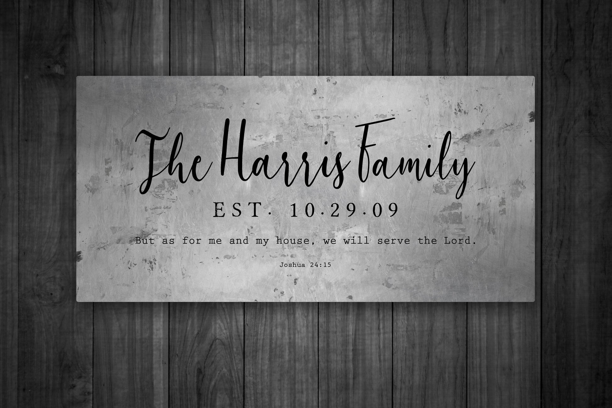Joshua 24:15 Custom Wedding Gift. Distressed metal wall decor customized for the couple! Industrial farmhouse style, rustic Personalized Family Name Sign features the family name and date with a caption from Joshua 24:15, "But as for me and my house, we will serve the Lord". Perfect for the new couple, or as a tin gift for 10th anniversary. Ready to hang options available for a gift that's ready to display, right out of the box.
