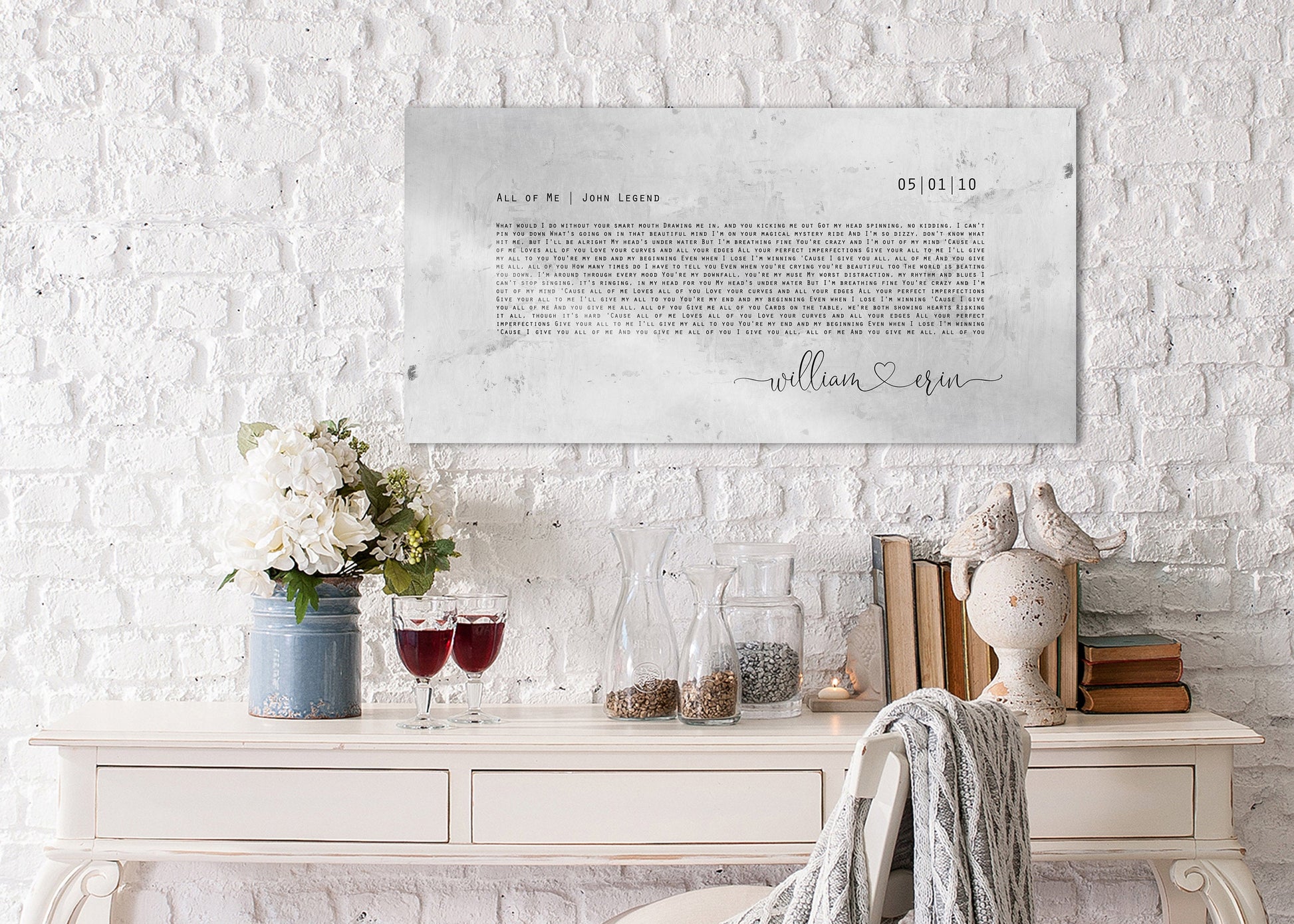 Modern style for him, with a romantic touch for her! 10 Year Anniversary Song on Tin features your names, wedding date and the song of your choice. Celebrate your ten year wedding anniversary in style. Industrial farmhouse style, rustic decor works great in modern spaces too. Perfect for the new couple, or as a tin gift for 10th anniversary. Ready to hang options available for a gift that's ready to display, right out of the box.