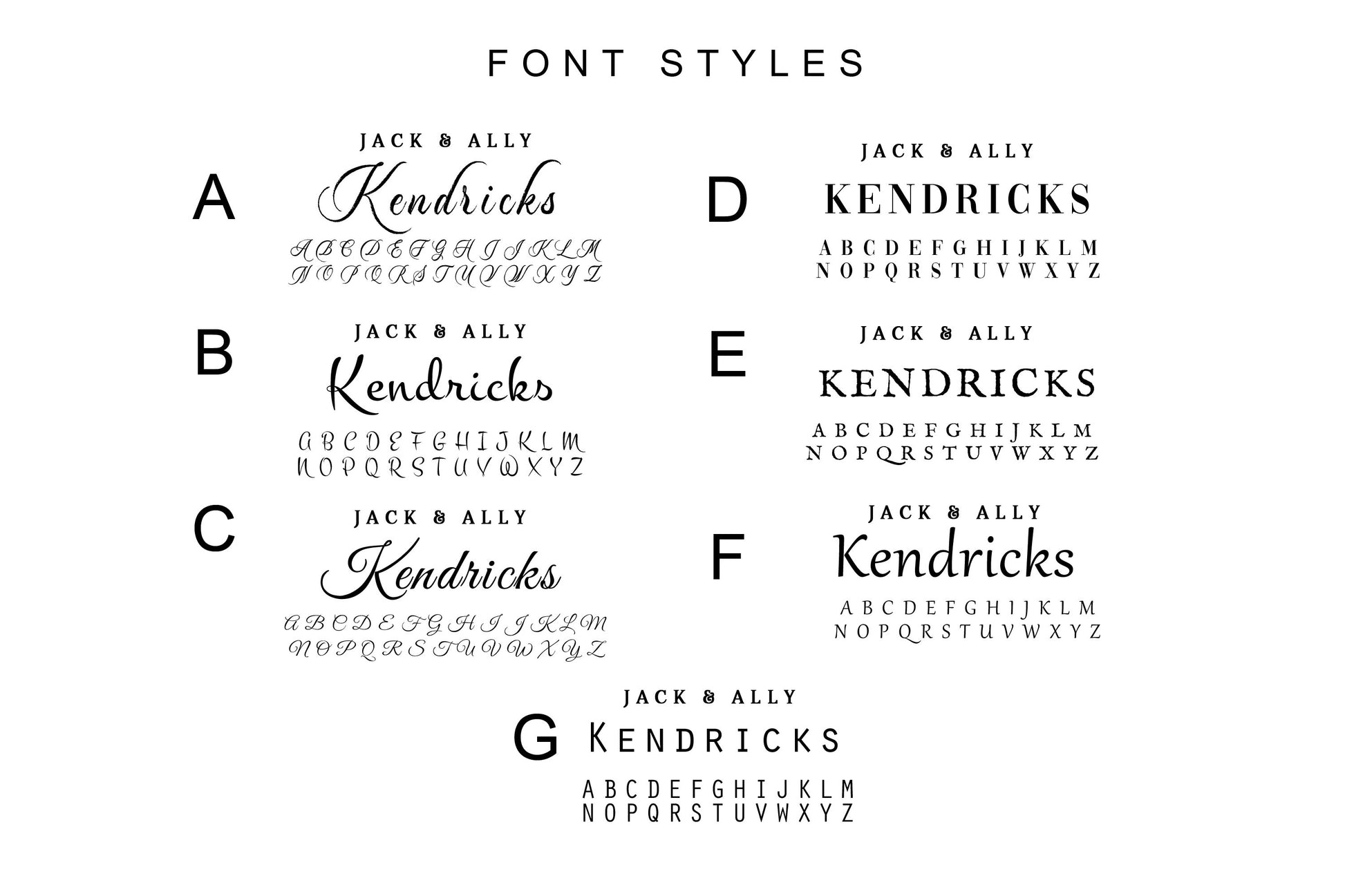 • Use the Personalize box to enter preferred font (see photos), wedding vows/wording, names and date*