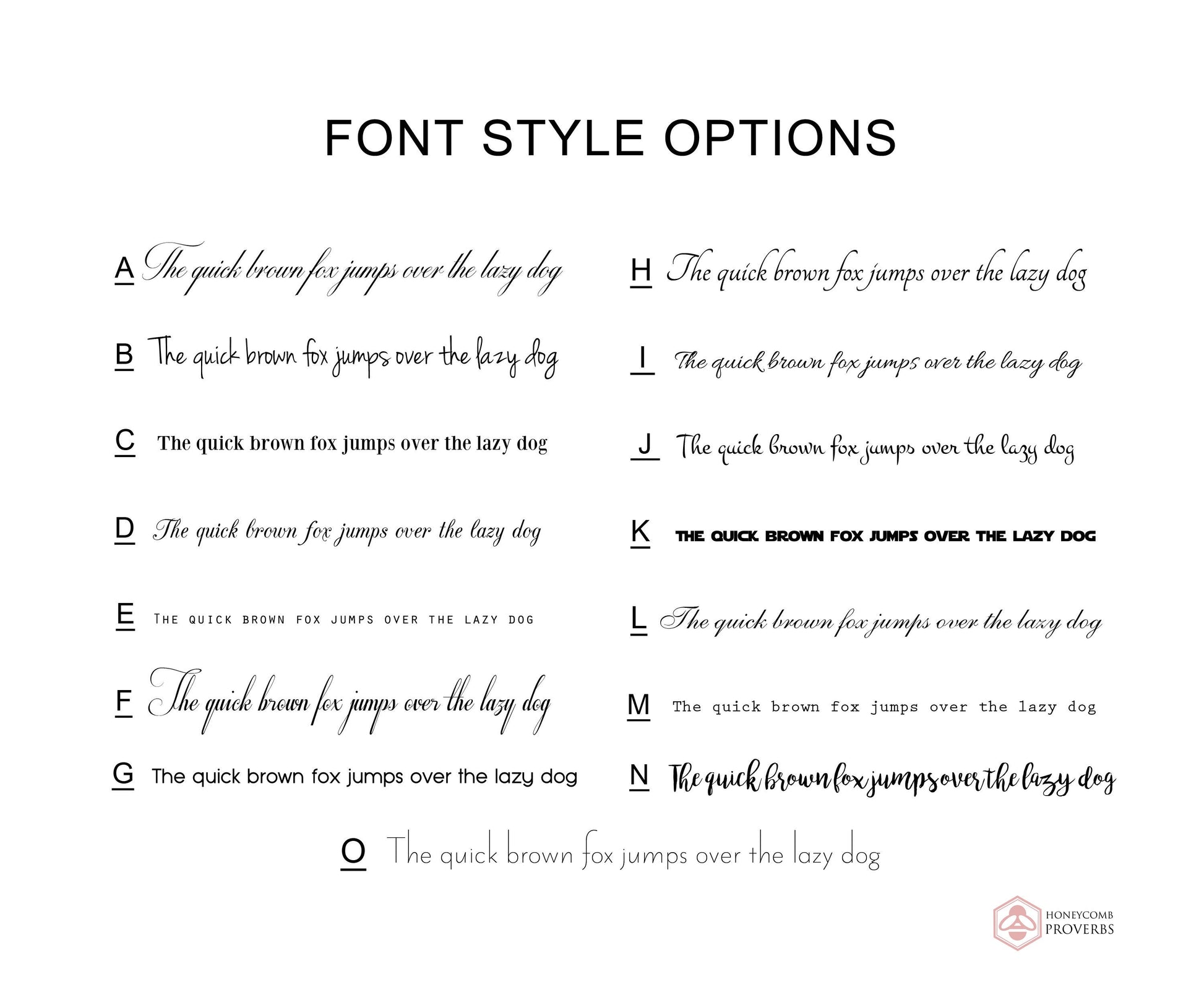 Song Lyrics: Provide the artist/song title in the personalized field and we will be happy to source the lyrics for you. During the proofing process you can review for errors to ensure we have the correct version of your song. If you prefer to provide the lyrics, you can use the notes field at checkout or email them to us at cs@hunnycombproverbs.com