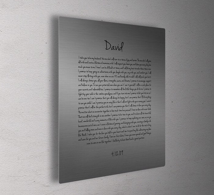Wedding Vows on Metal make the perfect "tin" anniversary gift for your tenth wedding anniversary!